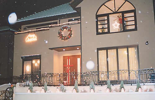 妻がツリーに応募したので、私がイルミネーションの方に出しました。義母と妻が一生懸命飾りつけしていました。会社帰りに我が家を見るとピカピカ光っています・・・。