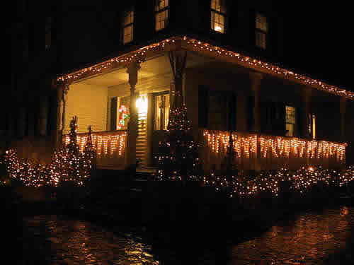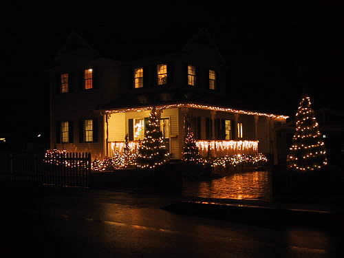 3年前に家を新築したのを機会にイルミネーションを始めました。今年は3度目。これまででいちばん電球の数も多くて華やかになりました。 (写真2枚)