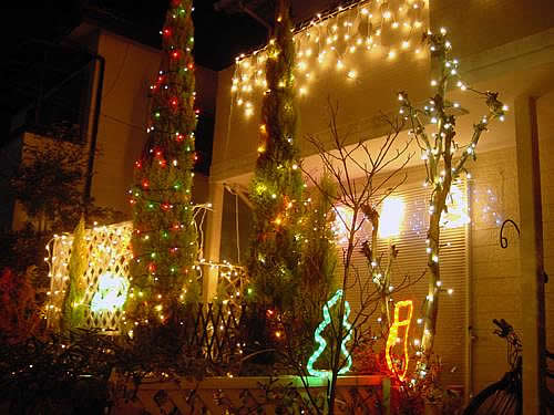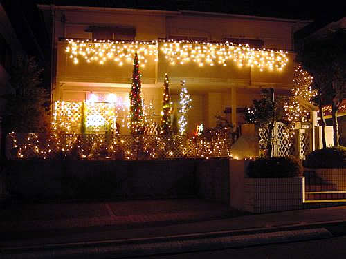 一枚目は家の前の道路から、二枚目は庭からです。サンタやトナカイがいないのが少しさびしいかも・・・ (写真2枚)