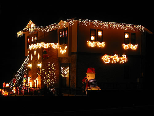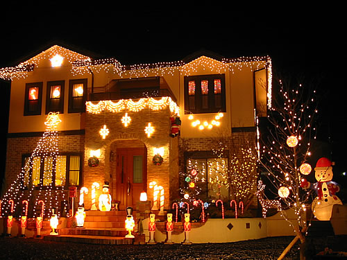 イルミ歴2年目になります。アメリカのクリスマスをイメージし、飾りつけしました。(写真2枚)