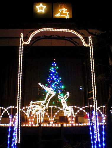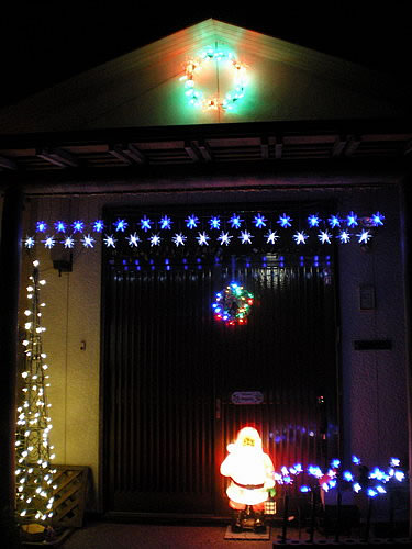 場所の関係で、家全体の写真が撮れません・・ メインに飾っているデッキと玄関付近の写真です。