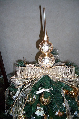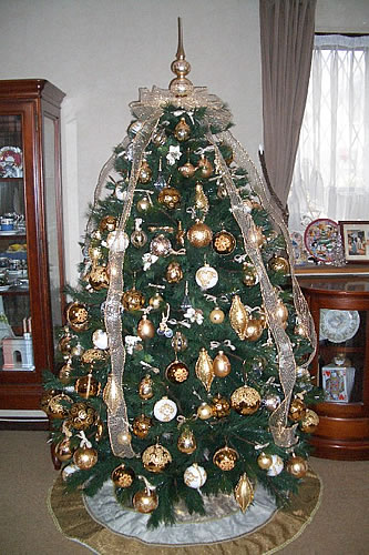 昨年購入した180センチのキングピークツリーです。ツリースカートの色にあわせてオーナメントをゴールドとホワイトにしました。