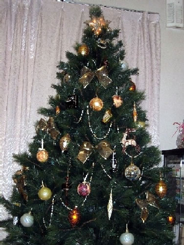 いつか大きなツリーを…と思いながら、オーナメントだけをコレクションしてきました。今年御社のキングピークツリー180cmを購入し、やっと夢をかなえることができました。ビーズでガーランドを作ったり、飾りつけは本当に楽しいものでした。まだ後半面は飾りがありませんが、それは今後の楽しみとなっています。「来年はツリー・スカートを作ります!」と、ここで決意表明!