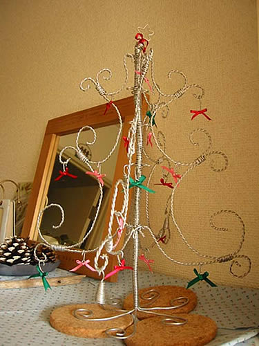 どちらも小さいツリーですが,気に入っています。2本目のものはアルミワイヤーで自作したものです。3歳の娘と一緒に楽しく飾り付けしました。