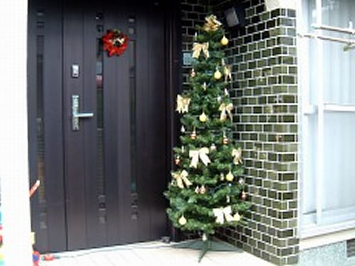 我が家の玄関先のツリーです。点灯するともっと綺麗です。