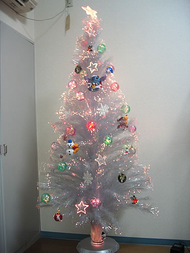去年買ったツリーです。180cmのファイバーツリーなので少しだけ飾り付けをしました。スティッチがポイントです。