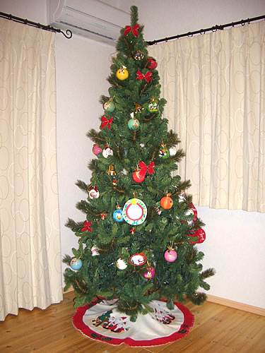 はじめて、妻と子供にクリスマスツリーをプレゼントしました。215CMのキングピークススレンダーです。松葉と2色の葉は本物のようです。今回は、子供が紙皿で作ったサンタのオーナメントとディズニー好きの妻のために、ディズニーオーナメントで飾りつけしました♪