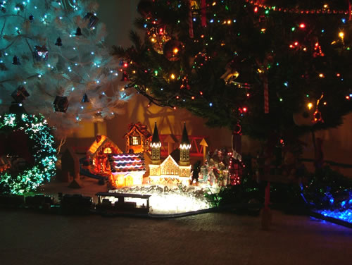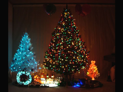 4年目のアルバータツリーです。毎年このツリーで良かったと満足しています。今年はNakajoさんから購入したホワイトLEDを束のまま床に置きプラスチックの氷をその上にバラ撒いたものを追加しました。実物はかなり綺麗です。