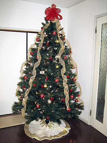 今年はクリスマス会で集まる子供達向けに赤とゴールドでまとめました。写真ではよく見えませんが、クリスマスリースを首にかけた豚や羊の飾りがとても気に入っています。