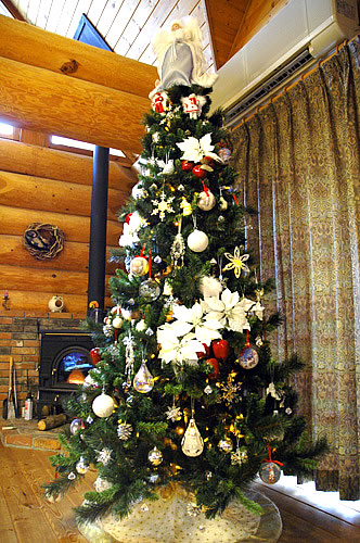 貴社のツリー2年目です。今年はツリートップに天使をどうしても置きたかったので、ホワイトをイメージして飾りました。天使の下にいる人形は2人の子どもです。ツリー飾るのって楽しいですよねぇ。