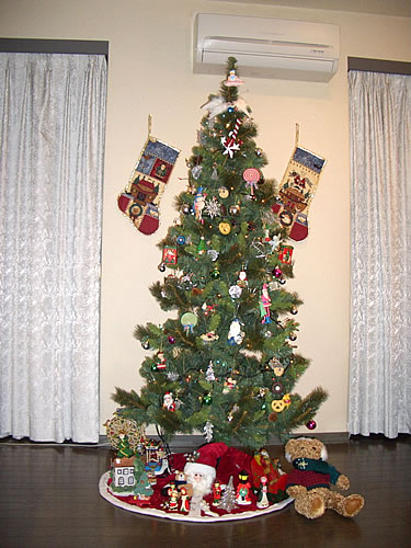 今年、貴社で購入しましたキングピークスレンダーツリー185cmです。オーナメントは毎年買って集めていたものですのでどれも思い出がつまっています。でも来年はもう少し色やデザインを統一したいと思います。