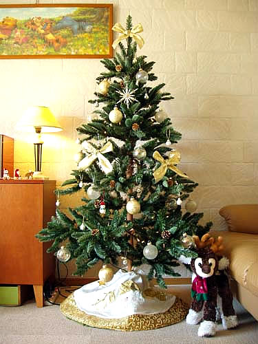 我が家にはじめてツリーがきました。グリンデルツリー150です。150は小さいのかと最初は思っていましたが、いえいえ、とんでもない。かなり存在感あります。しかも姿が美しい!まだまだオーナメント少な目ですが毎年徐々ににぎやかにしていくつもりです。トナカイくんも喜んでいます。(笑)