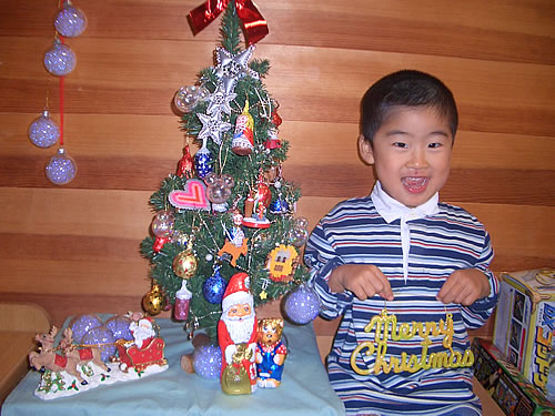 息子とツリーを飾り終え記念に撮った写真です。ツリーは小さく物足りなさを感じてはおりましたが、昨年購入した飾りや置物に、今年購入したチョコのオーナメントを飾り、息子と配置を考え完成!!小さくても息子は嬉しそう、4歳になる息子はクリスマスの楽しさをわかってきたようで成長を感じれたひと時でした★
