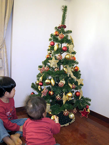 赤とゴールドのオーナメントで飾り付けした我が家のクリスマスツリーです。 毎年、気に入ったオーナメントを見つけては増やしながら、理想のクリスマスツリーに近づけています。息子たちに邪魔されながら飾るのがひと苦労ですが、 楽しみながら飾っています。