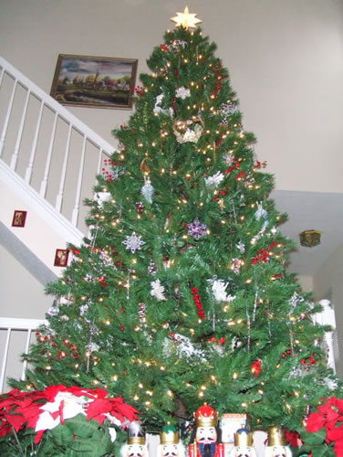 ツリーの高さは、9フィート。ガラスのオーナメントでまとめ、シンプルにしてみました。オーナメントは、毎年少しづつ増やすようにしています。夜は、ツリーが間接照明代わりとなっています。
