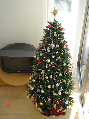 二年目のアルムスレンダー(215cm)です。去年とほぼ同じアングルで撮りましたが、オーナメントが増えた分だけ華やかになりました。
