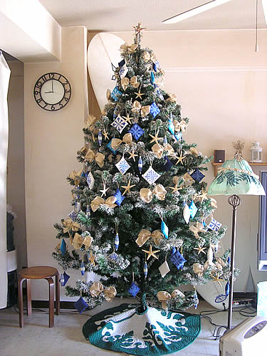 ヒトデや手作りのオーナメントで飾っています♪