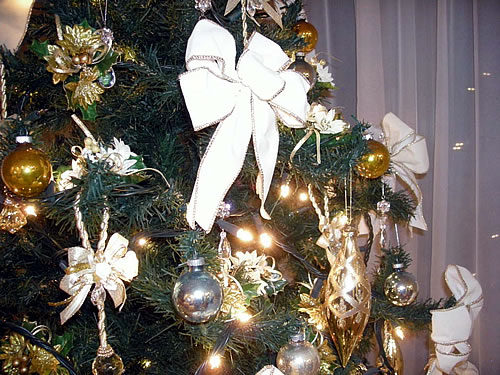 今回も御社の180センチツリーと今年のオーナメントは白、金、銀で統一しました。