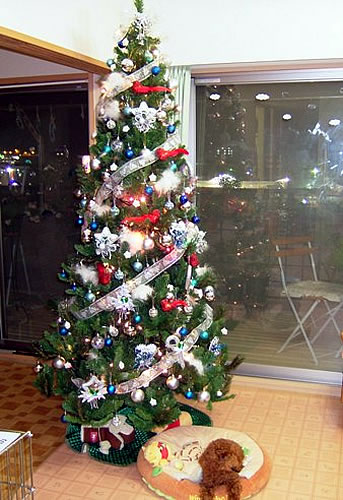 トイプーがまだ子供なのでオーナメントを齧って遊ぶので