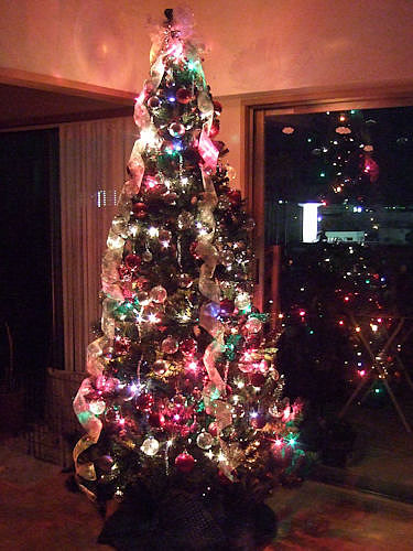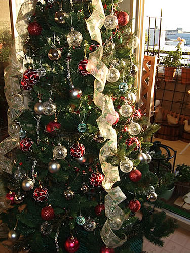 215cmキングピークスレンダーツリーです。 レッドとシルバーでまとめました。 今年は新しいオーナメントは買えませんでしたがライトアップで楽しんでいます。 夜はツリーの灯りだけで過ごすこともあり癒されています。 日光に照らされて輝く様子も綺麗です