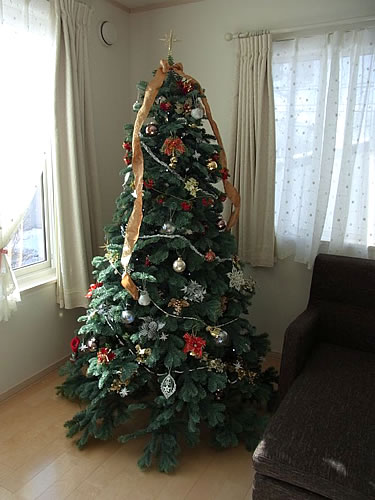 引っ越しを機に憧れだった大きなツリーが欲しくて、主人からのクリスマスプレゼントとしていただきました。 まるで本物の木のようで、飾りを付ける前からその枝振りの良さ、深い色合いに見とれていました。 飾りは中城さんで昨年、今年と購入したもの、そして今まで集めていた物を飾り付けました。9ヶ月になる娘が、ママが大切にしているのが解るのか、そーっと枝に手を伸ばしてはニッコリしています。 これから毎年、ツリーの飾りは少しずつ増やしていきたいです。