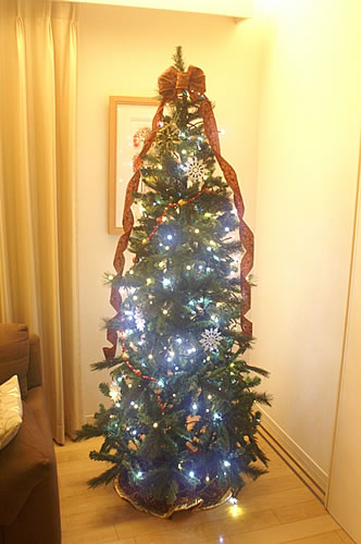 下の子供がグラスボールで遊んで割ってしまうので、今年はグラスボールなしのシンプルなツリーになりました。