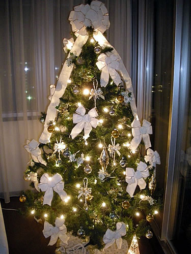 白のリボンもとても上質で、ステキなツリーにできあがりました^^