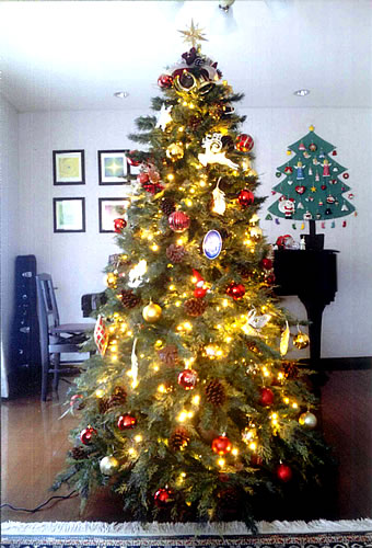 フェアリーフォレストはとても立派なのに高さや幅が大き過ぎず優しい立ち姿です。 松ぼっくりとライトだけでも充分美しく、もう何も付けなくてもいい・・・とさえ感じます。 でも、オーナメントで飾り付けてみると、ぐっと華やかになりツリーもおめかしできて喜んでいるように見えます。 このツリーの下で、大人も子供も、沢山の楽しいクリスマスの思い出ができますように。