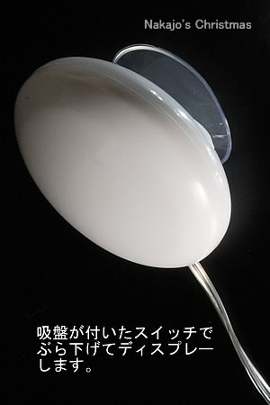 電池式のエコなモチーフライトスイッチを入れるとLEDライトが光ります。電池式なので配線の手間もなく、吸盤を利用すれば手軽に窓辺を飾ることができます。(室内仕様) |