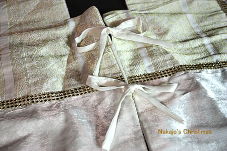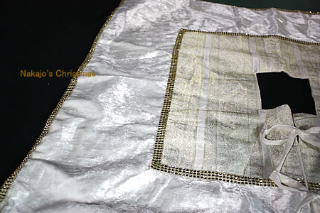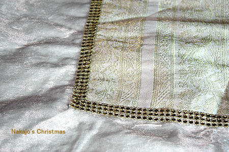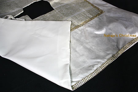 直線が美しいツリースカートツリースカートは円形にこだわる必要はありません。要は床とツリーに一体感をもたらし、全体のイメージをいい感じに引き上げる効果があればOKです。スクエアグレースツリースカートは光沢のある上品な生地を使用し、中ほどには違う柄の生地、そしてフチにはスパンコールを配した美しいツリースカートです。正方形ですので、同サイズ(95cmタイプ)の円形ツリースカートより大きく見えるのも特長です。 |